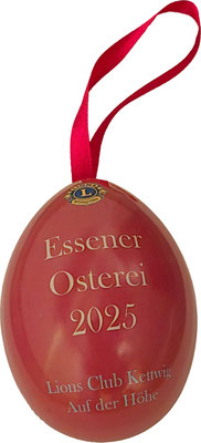 Das "Essener Osterei" ist eine jährliche Activity des Hilfswerks des "Lions Club Kettwig - Auf der Höhe". Die kunstvoll bemalten Ostereier, die stets bekannte Essener Bauwerke zeigen, werden für einen guten Zweck hergestellt und verkauft.